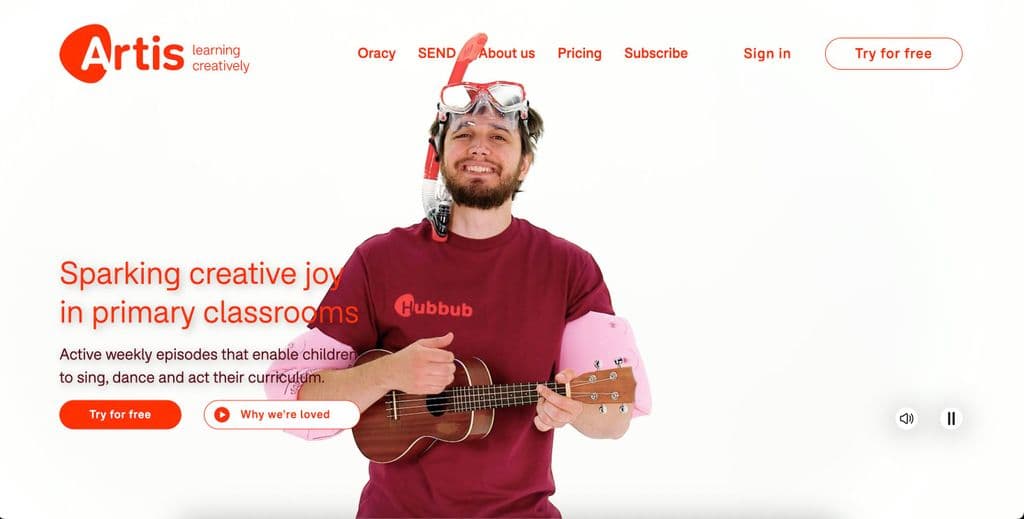 It's a creative learning video platform for primary schools, delivering weekly, curriculum-linked episodes that enable children to sing, dance and act the curriculum. Teachers using Artis have seen significant improvements in oracy, engagement, confidence and wellbeing. Teachers have reported a particularly strong impact on children with SEND and ESL children. It also helps teachers bring more creativity into their classrooms.