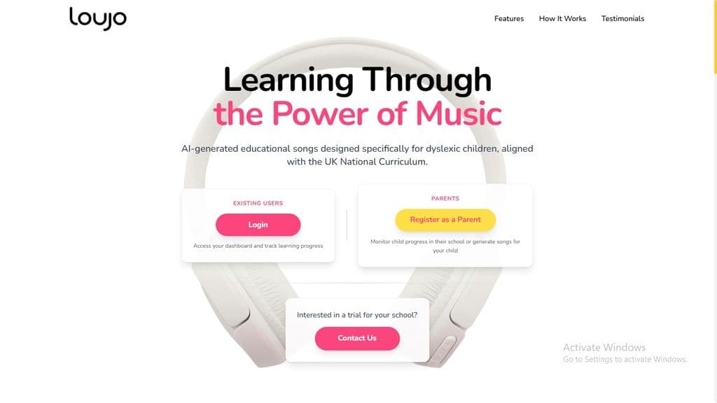 In schools, Loujo is typically implemented as a supplementary tool to support dyslexic students' learning needs. Teachers can generate custom songs for specific topics and assign quizzes to assess understanding. The platform appears to be particularly effective for specialized learning environments, small group settings, or one-on-one tuition as mentioned in testimonials. Educators can track and measure progress through the integrated analytics system, which helps increase engagement, behavior, and attainment at Key Stages. Parents can also be involved in the learning process by monitoring their child's progress through the dashboard, creating a collaborative approach between school and home to support dyslexic children's education.