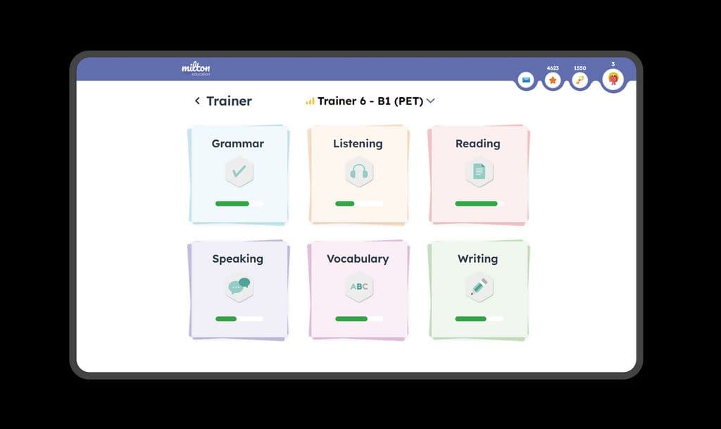 Read Play is typically implemented in schools as a flexible tool that supports both classroom and home learning. Teachers can utilize the detailed assessment tools to continuously monitor student progress while allowing learners to work independently through the exercise bank. The 100% hybrid methodology enables educators to personalize teaching for each student thanks to the depth of content available. The platform's audio readings with a "karaoke" effect enhance the reading experience, while the gamified elements maintain student motivation and engagement. Schools can integrate both the digital platform and physical Bookroom Bites workbooks to develop reading comprehension and creative writing skills in a complementary approach.